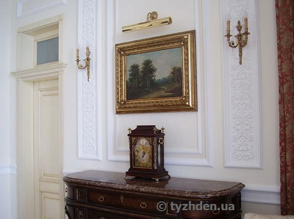 Подейкують, що камін із білого мармуру з позолотою в холі будинку - точна копія каміну, встановленого на дачі у Путіна. Начебто його будували одні і ті ж майстри