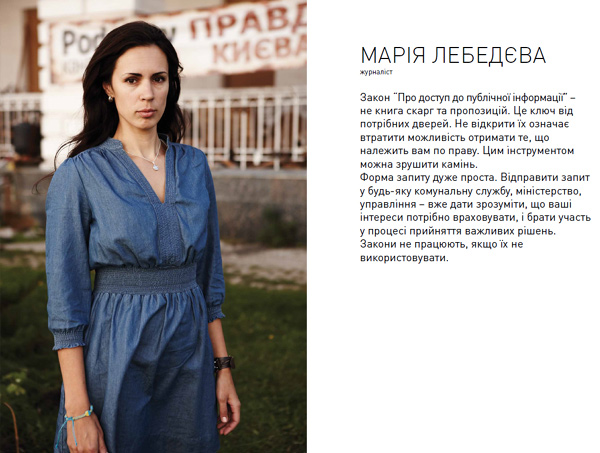 Фотопроект підготували громадська кампанія "Новий громадянин" та рух "Стоп Цензурі" з метою популяризації закону про доступ до публічної інформації.