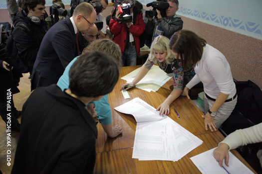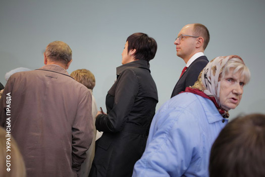 Яценюк прийшов з дружиною, однак на дільницю зайшов на пару з журналістом Мустафою Найемом