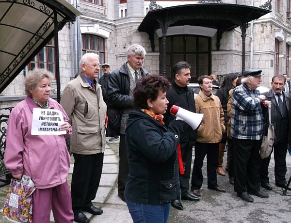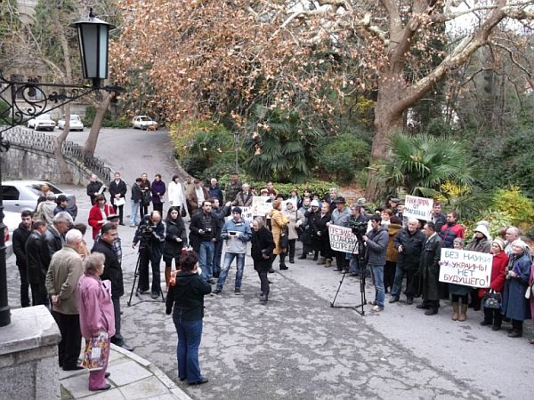 Місцеві громадські активісти закликали ялтинців на мітинг – і люди прийшли, зокрема, колишні "магарачці". У підтримку інституту "Магарач" також виступили представники громадських організацій, зокрема – "Український вибір", "Російська Громада Криму", а також "комуністи-грачевці", зазначає автор.