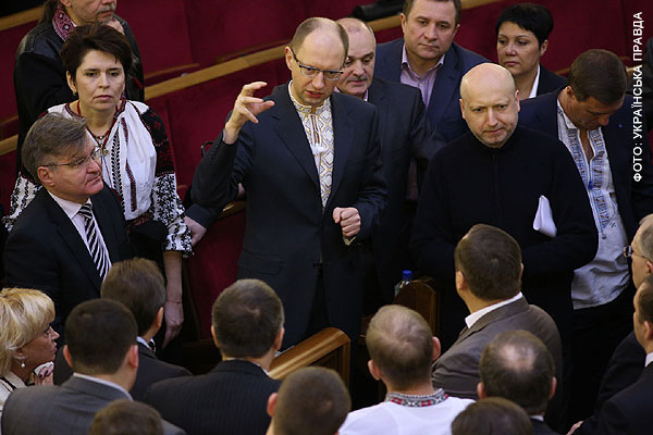 Зранку до них приєдналися депутати "Батьківщини" та "Свободи", багато з них одягнені у вишиванки.