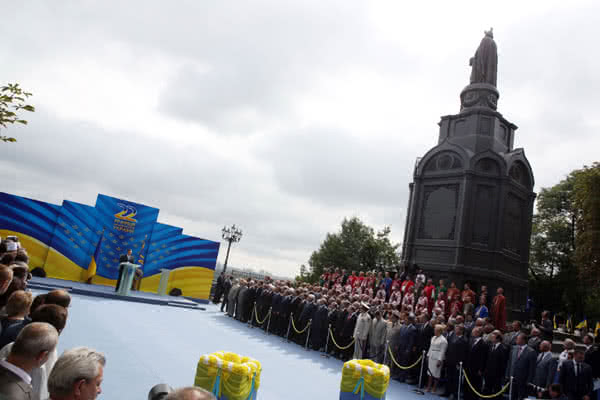Пізніше президент виступив на урочистостях з нагоди Дня незалежності біля пам'ятника князеві Володимиру.