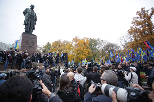 Українські праві на чолі з ВО "Свобода" приїхали в Київ святкувати свято Покрови пресвятої Борогодиці, День українського козацтва та День заснування УПА.