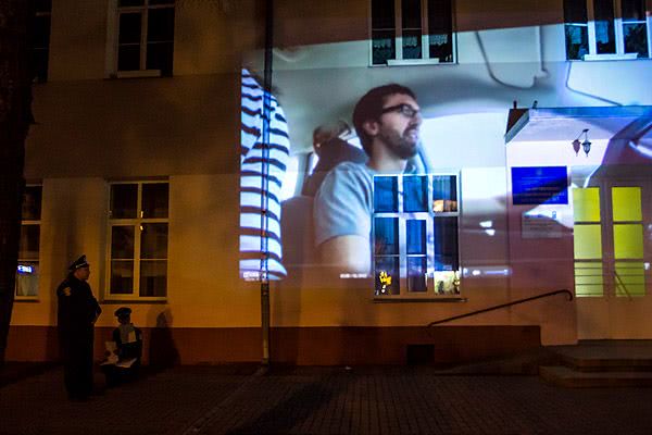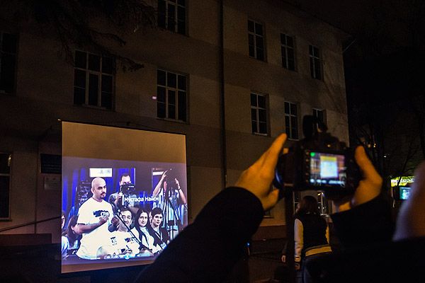 Пізніше кіносеанс перенесли на вулицю - організатори винесли туди прожектор та екран.