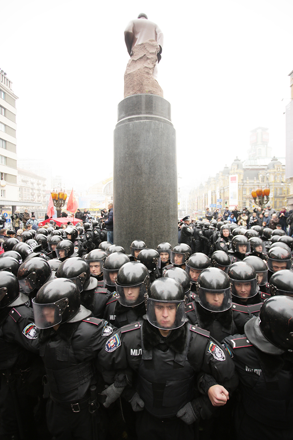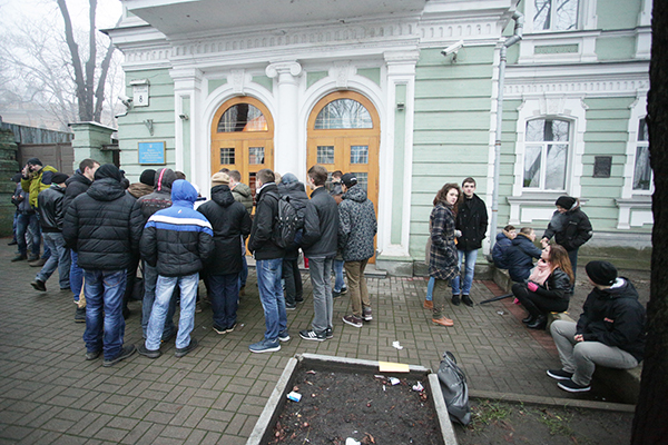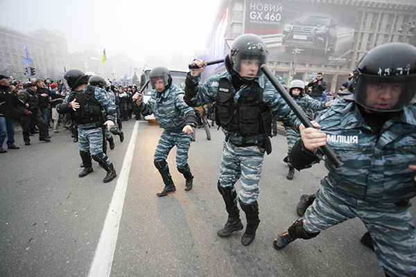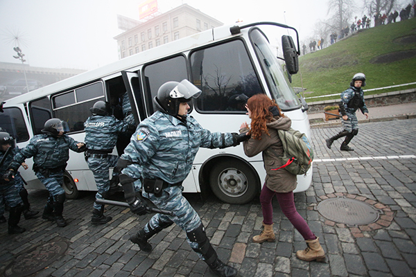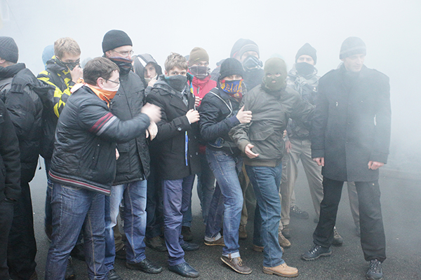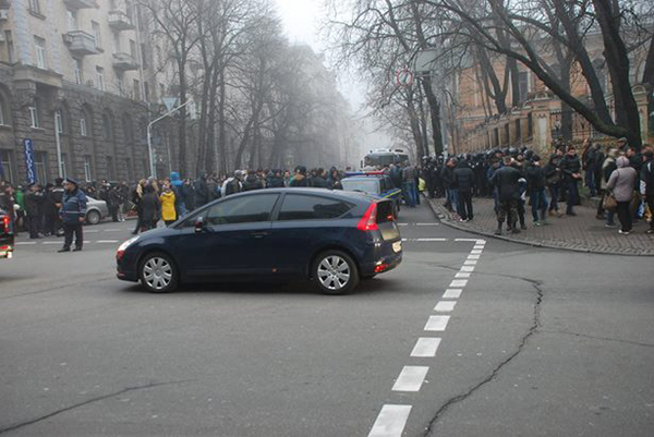 По завершенні мітингу колона протестувальників рушила до Кабміну, однак він був оточений бійцями "Беркуту" та молодими людьми характерної зовнішності. Почалися сутички, "Беркут" застосував сльозогінний газ.