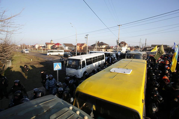 На повороті до резиденції у Нових Петрівцях було виставлено кілька кордонів охорони з ДАІ, важкої техніки та бійців внутрішніх військ.