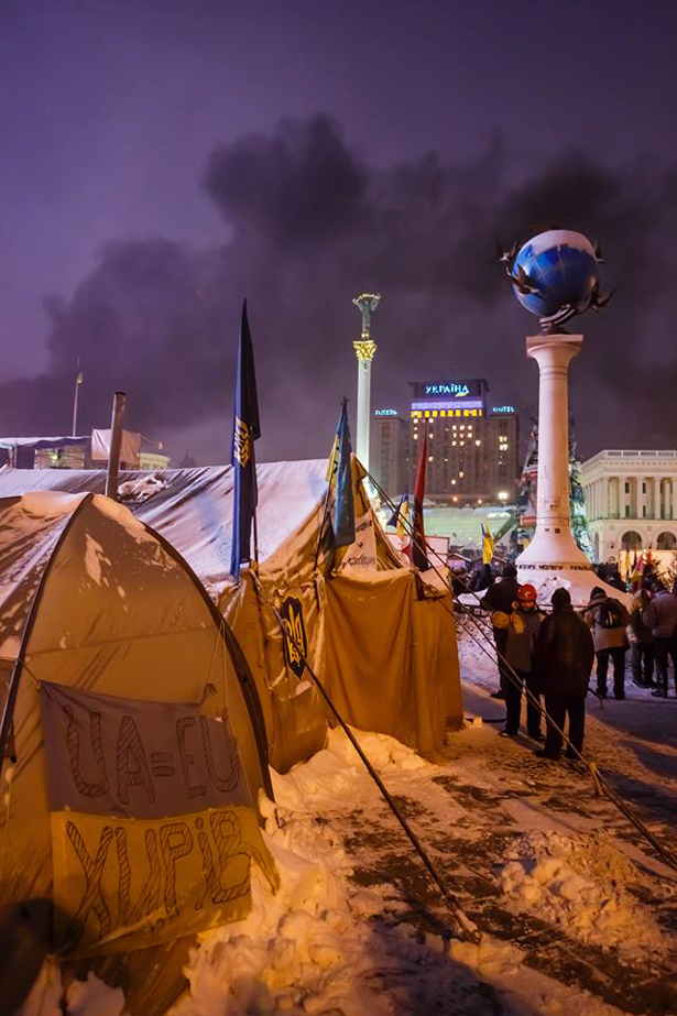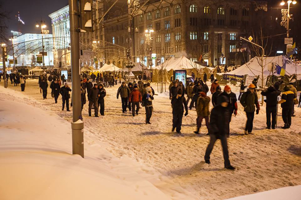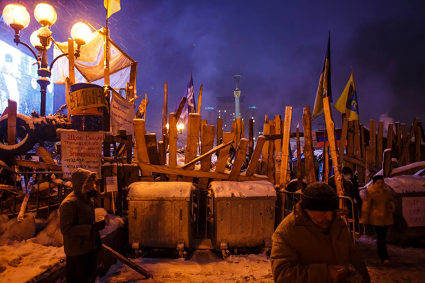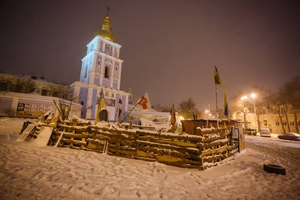 Засніжений Євромайдан у День Соборності: укріплює барикади та згадує загиблих у сутичках із силовиками вранці 22 січня.