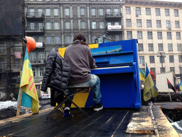 Революційне піаніно встановили просто у автобусі, що згорів, на барикадах вулиці Грушевського. Першою заграла на ньому Руслана.