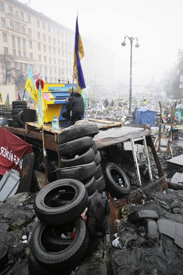 10 лютого революційне піаніно встановили просто у автобусі, що згорів, на барикадах вулиці Грушевського в Києві. Першою на ньому заграла Руслана.