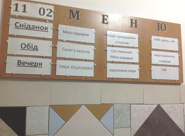 | У коридорі за всіма правилами вивішено меню на день |