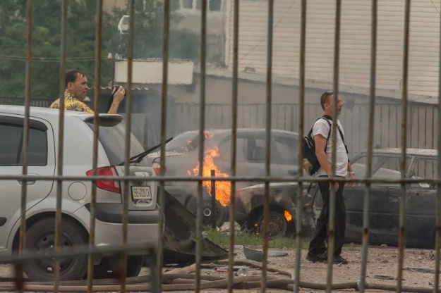 | У Луганську бойовики цинічно, під пильною увагою камер російських журналістів, в прямому ефірі телеканалу Life News завдали удару по кварталах Степовий і Мирний. Фото: ФБ Roman Burko |