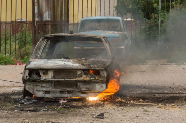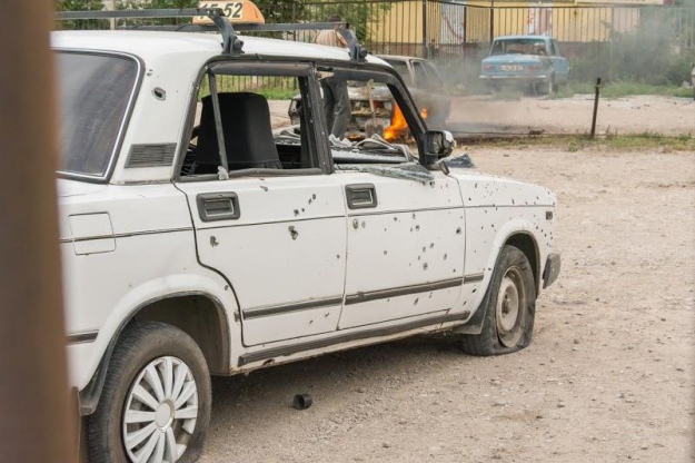 | Машини, постраждалі від обстрілу російських терористів. Фото: informator.lg.ua |