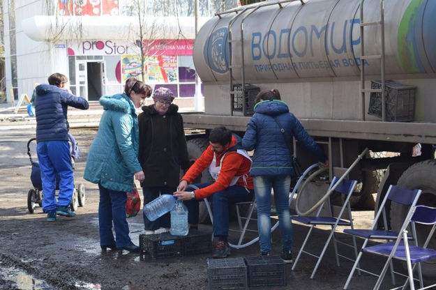 Зовсім поруч, лише за кілька сотень метрів звідси війною не пахне. По бульвару Шевченка безтурботно гуляють місцеві. Жінка пенсійного віку на поводку вигулює таксу. З подружками обговорює останні новини. За місцевими чутками, вода має скоро з’явитися. "Ремонтники ДНР вже розмінували фільтрувальну станцію", – каже жінка з собачкою.
