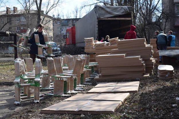 Хоча на календарі субота, у школі №6 кипить робота. Чоловіки прибирають територію. Школярі тягають коробки – чергова допомога навчальному закладу. Цього разу ЮНІСЕФ надав школі меблі.
