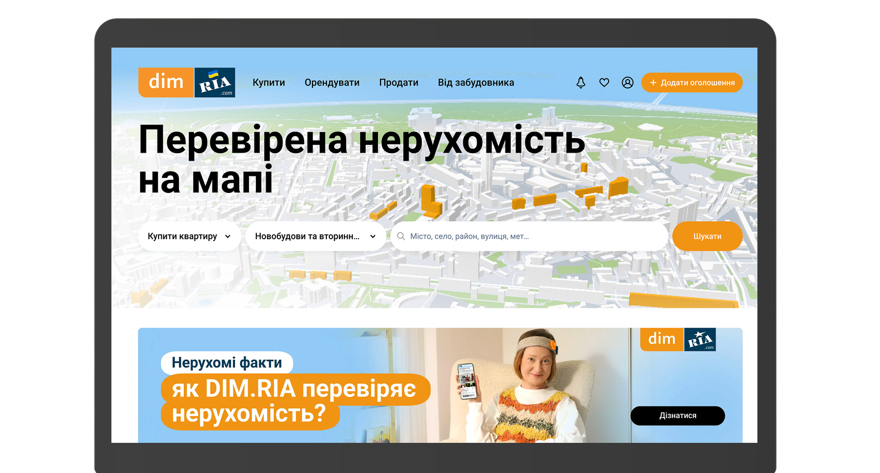 DIM.RIA максимально сприятимемо легкому процесу пошуку та придбання.