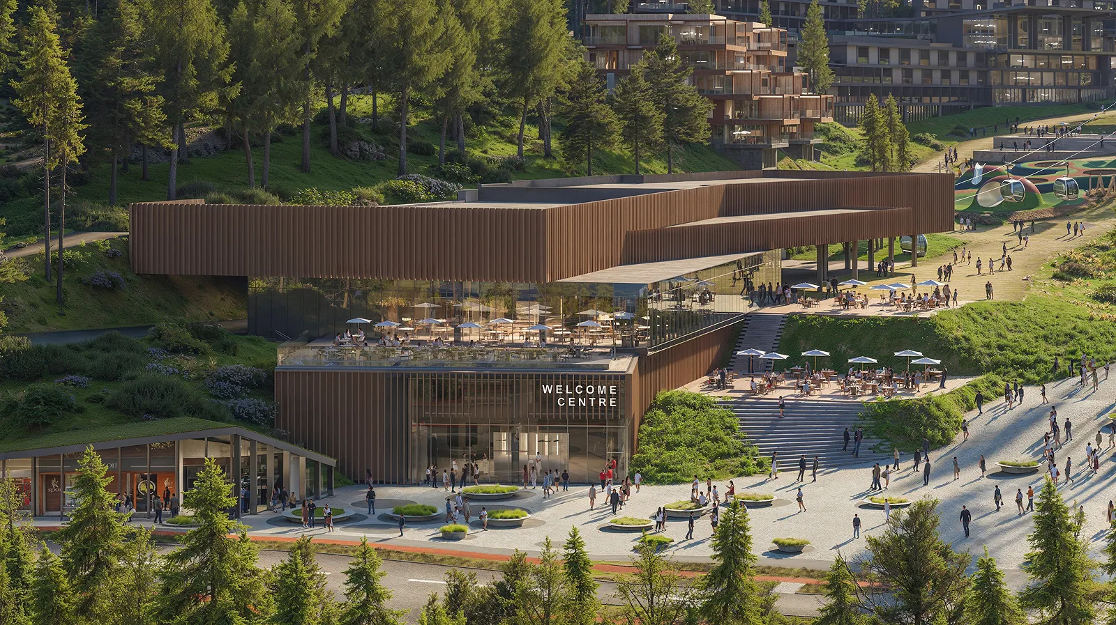 З третього рівня Welcome Centre гість зможе потрапити у зону après-ski, культове місце для гірських курортів світу. Тут надворі зупиняються між спусками, зустрічаються з друзями, гріються на сонці з гарячим напоєм або келихом вина та дозволяють собі не поспішати й просто дивитися на гори. Ця зона важлива, бо створює "паузу" в ритмі катання: місце, де можна перепочити й перезавантажитися, не виходячи з маршруту.