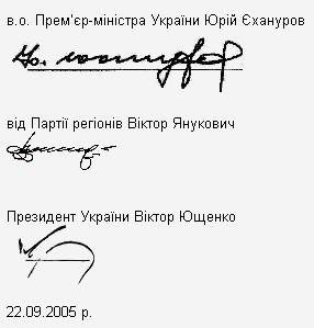 Этот меморандум был подписан за несколько часов до голосования за кандидатуру Юрия Еханурова на должность премьер-министра. Само подписание данного документа, по словам депутатов фракции Партии регионов, позволило им участвовать в голосувании. Документ не содержит в себе обещаний должностей, как заявили уже бывшие соратники Ющенко, а лишь гарантии прекращения политических репрессий.