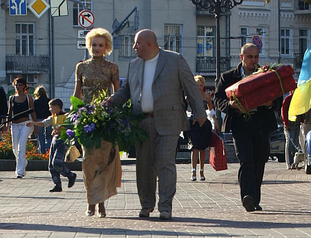 Їх розбавили депутат Семинога та заступник Тимошенко Михайло Бродський – з дружинами. Останній йшов з великим червоним пакунком. "Напевно, матрац "Венето", - пожартував фотограф у натовпі.