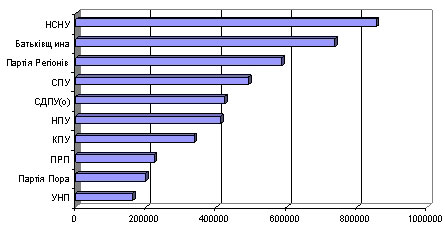 Лидером представленности в печатном медиапространстве Украины среди политических партий за прошедшую неделю был "Народный союз Наша Украина". Он лидирует над Батькивщиной, перешедшей с третьего на второй место и Партией регионов, отступившей на третье место, соответственно примерно на 14 % и на 32%.