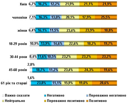 Меньше всего одобряет деятельность столичного мэра киевская молодежь – положительно и скорее положительно ее оценивает 38% представителей этой группы, что ниже среднего показателя по всем возрастным группам (однозначно положительных оценок почти 20%).