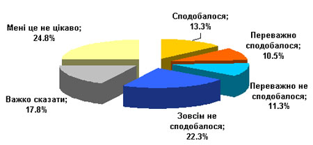 Более, чем 40% киевлян остались равнодушны к празднованию годовщины оранжевой революции. Около четверти жителей Киева говорят, что мероприятие им понравилось и скорее понравилось.