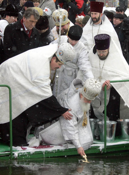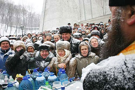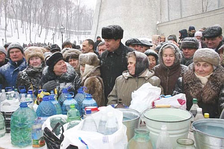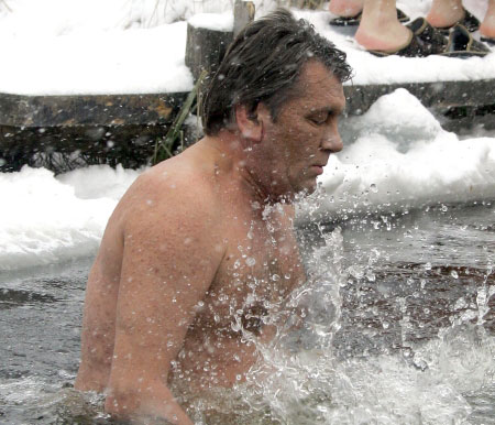 Так, Ющенко вместо того, чтобы убеждать депутатов не устраивать кризисы в стране, пошел как настоящий християнин на прорубь выкупаться. А вот Янукович испытать свое тело ледяной водой не рискнул. В теплой шапке и в обществе закутанных в платки бабушек, Янукович посвятил воду в Киево-Печерской Лавре.
