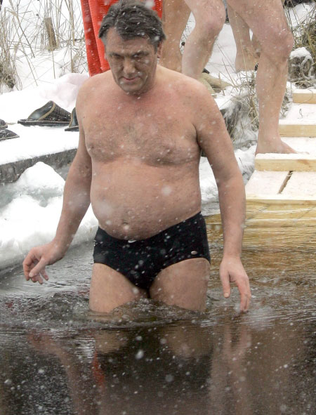 Так, Виктор Ющенко вместо того, чтобы убеждать депутатов не устраивать кризисы в стране, пошел как настоящий християнин на прорубь выкупаться.