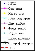 Результаты ни одного из этих центров (см. график) не приближаются к результатам профессиональных социологических центров (на графике – более жирная чёрная линия).