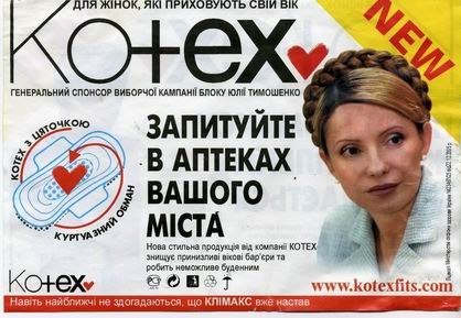 А вот житомиряне получили в свои почтовые ящики уже хорошо известную листовку, на которой Юлия Владимировна рекламирует прокладки "Котекс".
