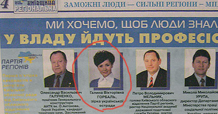 Яка до того ж значиться не більше не менше як "зірка української естради" у партійному виданні януковичів "Київщина регіональна".