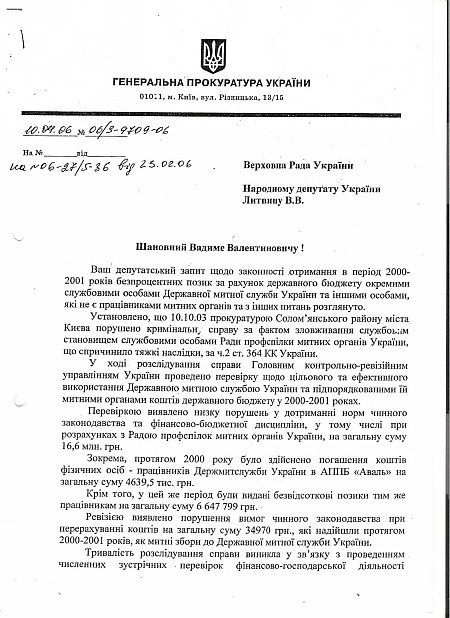 У жовтні 2003 року прокуратурою Солом'янського району Києва було порушено кримінальну справу за фактом "зловживань службовим становищем службовими особами Ради профспілки митних органів України, що спричинило тяжкі наслідки, за ст.364 ч.2 КК України".