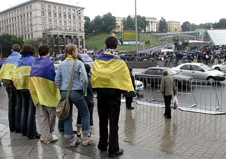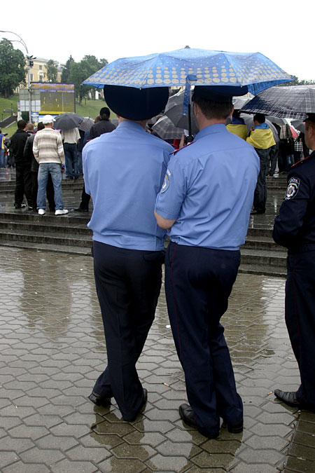 Вся країна у середу вболівала за наших футболістів – на робочих місцях, у кафе, магазинах, переходах і, звісно, на Майдані. Незважаючи на робочий час, власні проблеми і невпинну зливу, що затопила всю країну.