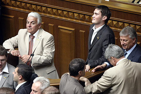 "Наша Україна" і БЮТ спостерігали це спокійно. Можливо, тому, що перед цим вони "стащили" клавіатуру від комп'ютера, який відповідав за реєстрацію депутатських карток у сесійній залі.