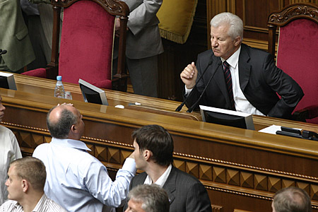 Після цього спікер Мороз вирішив звинуватити колишніх колег у зриві роботи Ради.