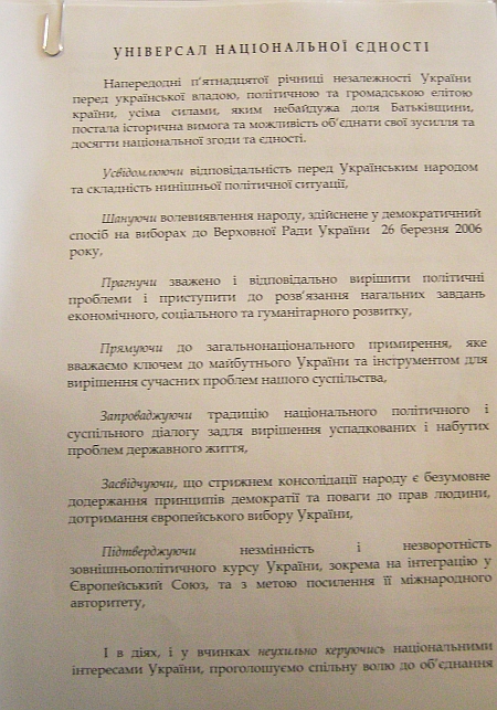 Подготовка своего текста Универсала показывает, что регионалы не собираются идти на поводу у президента Ющенко, даже если ценой этого станет премьерство их лидера. Возможно, регионалы где-то в внутри уже согласились с неизбежностью новых выборов.