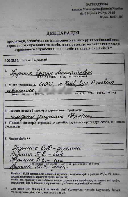 Вместе с тем, в справке Прутника значится, что он проживает в квартире по улице Январского восстания, где-то рядом с Виктором Януковичем.