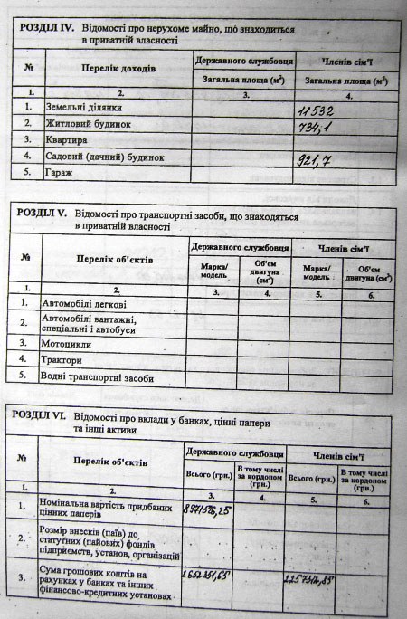 Во владении его жены находятся не много, не мало 11 500 г.кв. земли, а также дом на 734 г.кв. и дача на 921 г.кв.