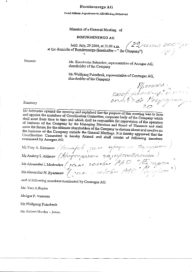 Жваву дискусію викликав іще один документ – це протокол загальних зборів РУЕ від 29-07-2004.