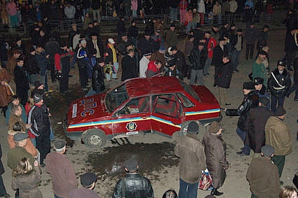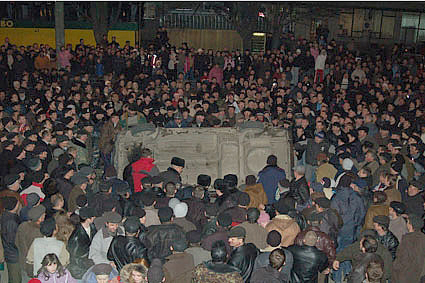 Тысячная толпа в Тернополе на проспекте Злуки кричала, переворачивала машины и требовала расправы над "пьяным ментом". По иронии судьбы, милиционеры в этот день отмечали профессиональный праздник.