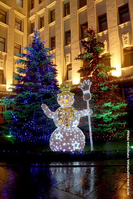 Вулиця Банкова, яку тиждень тому прикрасили сніговиками, гірляндами і вертепом, виглядала особливо святково.
