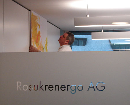 Это несколько аскетически оформленных кабинетов. При входе в "РосУкрЭнерго" – офисная стойкая из ДСП, похожа на миллионы своих близнецов, установленных в конторах по всему миру.