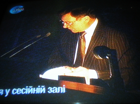 Адаму Мартынюку, который председательствовал на сессии, принесли переносную лампу.