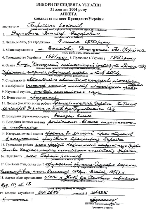 Чтобы не повторять этого позора, в 2006 году при выдвижении Януковича на второе премьерство документы, которые он должен был заполнить собственноручно, вместо него оформил кто-то из работников Партии регионов.