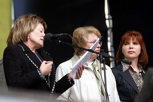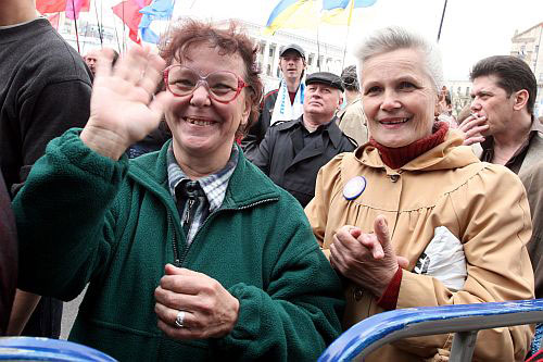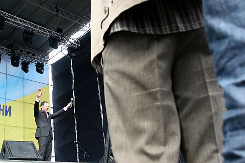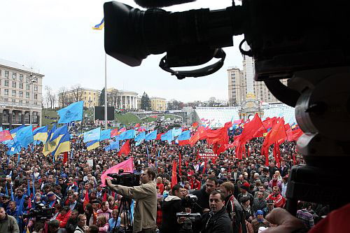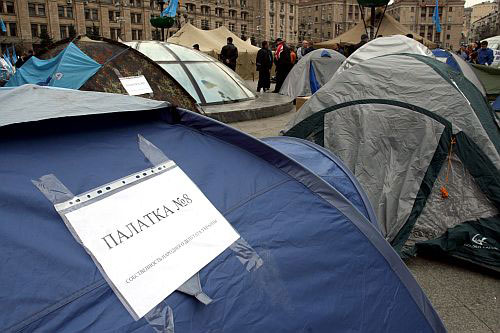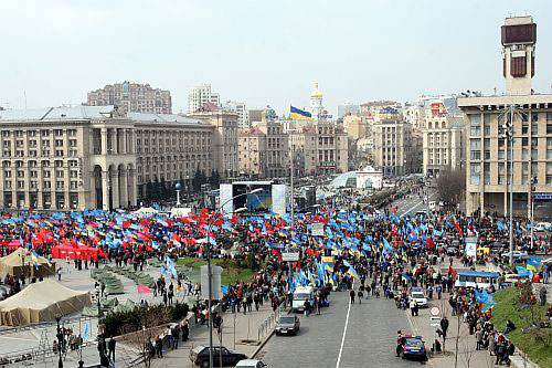 На Площади Независимости была установлена сцена, с которой выступали лидеры коалиции, а во второй половине дня колонна людей во главе с тремя "регионалками" Татьяной Засухой, Татьяной Бахтеевой и Людмилой Кириченко осуществили марш-бросок в секретариат президента.