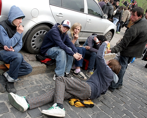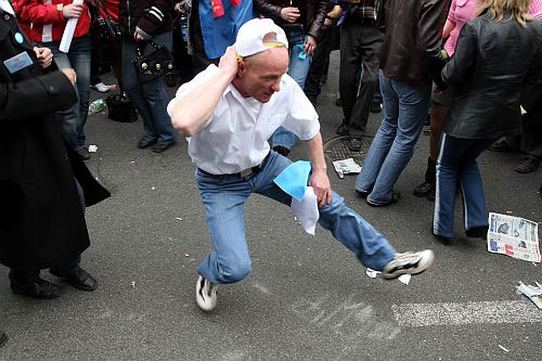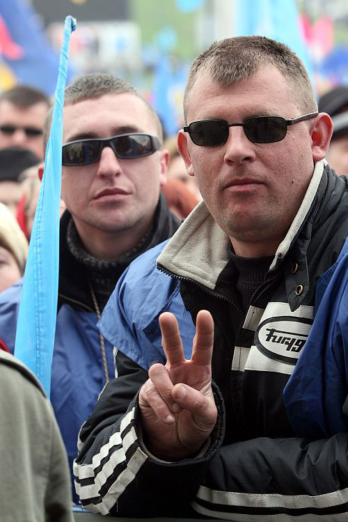 На Банковой их встретили не численные сторонники "Поры", которые, впрочем, заставили бело-голубой митинг сменить лозунги "Янукович! Янукович!" в пользу национальному гимну.