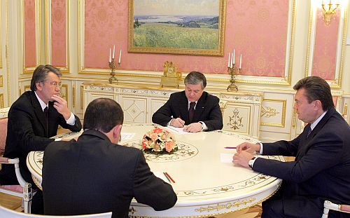 | Сразу после этого Ющенко принимал на Банковой своих "друзей" - Тимошенко, Кириленко и Луценко. |