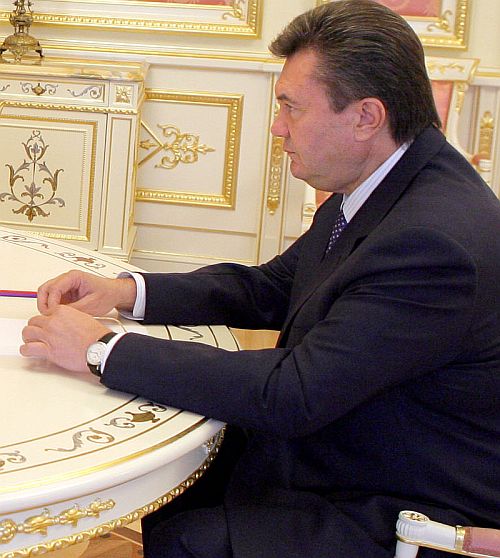 | Выражение лица Януковича в начале встречи... |
