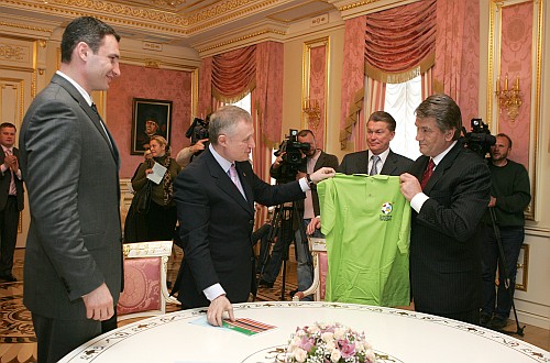 Об этом он заявил во время встречи с президентом Федерации футбола Григорием Суркисом, советником президента Виталием Кличко и главным тренером национальной сборной по футболу Олегом Блохиным, которые представляли Украину на тендере "Евро-2012".