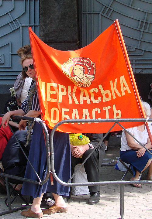 Судя по надписям на транспарантах, помитинговать людей наняли из Черкасской области