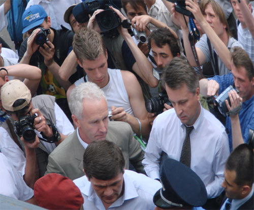 | Машину Наливайченко заблокировали демонстранты. К Ющенко он поехал на "фольксвагене" и.о. генпрокурора Шемчука |